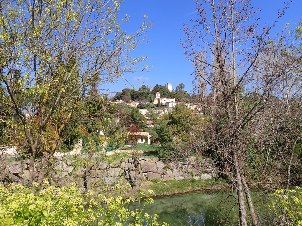 Après le franchissement d’un premier petit pont sur le Loup, nous apercevons déjà quelques canards s’ébrouant, spectacle que nous retrouverons à l’embouchure. Le vieux village et son château perché se dévoilent.