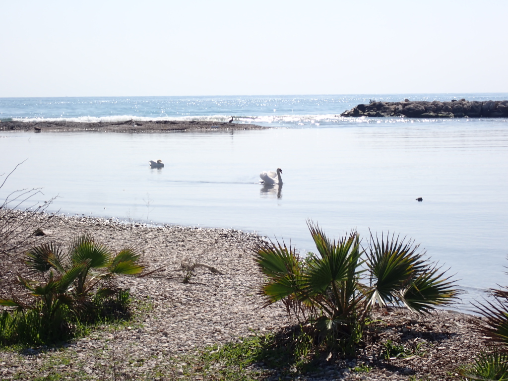 Nous atteignons finalement l’embouchure, où se côtoient canards, aigrettes, cormorans, martins-pêcheurs et cygnes, avant de déboucher sur la mer.